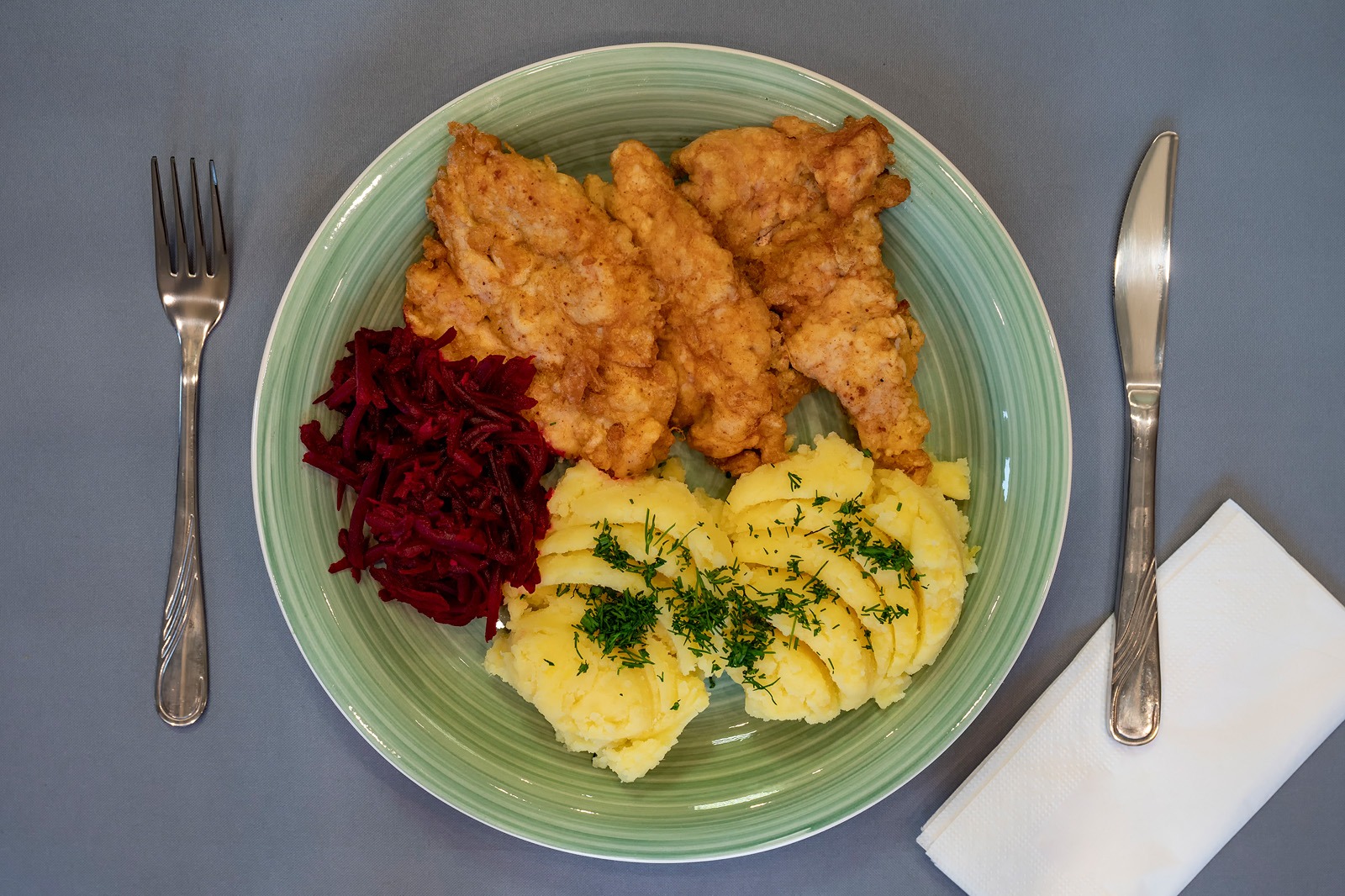 mix soczystych polędwiczek z kurczaka w autorskiej panierce oraz w chrupiącej panierce panko z frytkami i sosem -
