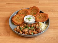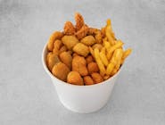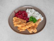 mix soczystych polędwiczek z kurczaka w autorskiej panierce oraz w chrupiącej panierce panko z frytkami i sosem -