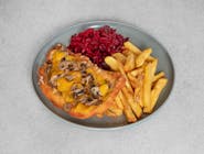 (cheddar, sałata cebula, pomidor, pikle, sos)